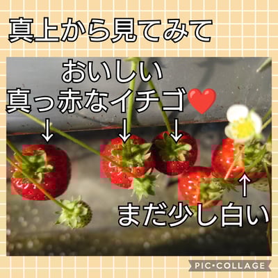 広い園内を自由に歩きながら、ヘタの近くまで真っ赤に熟したイチゴを探してみてください❤
