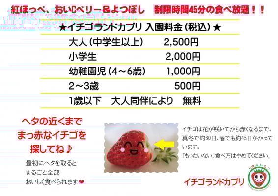 ・イチゴランドカプリは園内にお入りいただく「入園料」を頂戴しております